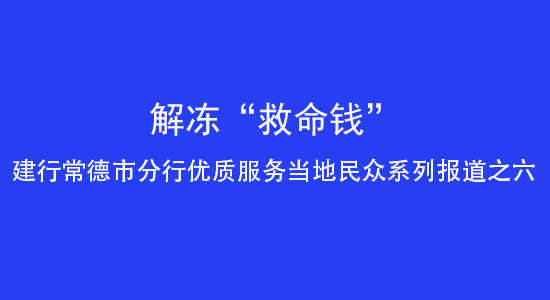 解冻“救命钱”——建行常德市分行优质服务当地民众系列报道之六