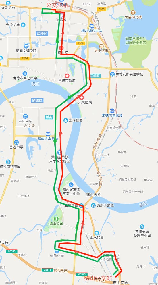 新增站点:北引桥(武陵大桥)、常德汽车总站、公交总站