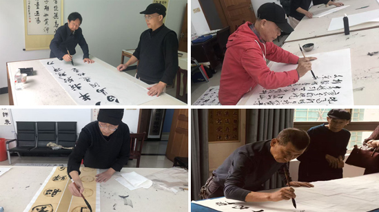 10多名书法爱好者齐聚一堂,笔走龙蛇。书法作品大多以自己创作的诗词对联为创作内容,作品内容积极向上,书法结体美观整齐,用笔功力深厚,笔锋遒劲,将重阳登高、菊酒飘香等意景融入其中。书法养心室内四壁挂满风格各异的作品,地上也铺满了水墨未干但墨香四溢的作品,引得观者驻足品评。学校离退处余明处长也被现场气氛所感染,现场挥笔助阵,让书法活动高潮不断,真正达到了书法养身养心的目的。