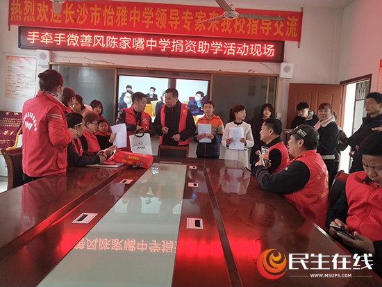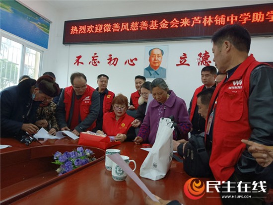 陈家嘴镇爱心志愿者在芦林铺中学送助学款