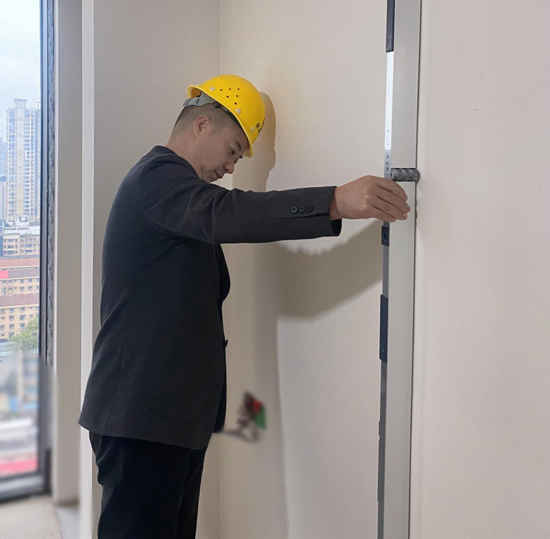 漆工基层处理决定家装质量的关键。巡检人员用检测尺逐点测量墙面、顶面平整度及阴阳角垂直度,要求阴阳角转角达90度垂直与水平标准,确保后期漆面成型后线条挺拔、视觉整洁,避免因基层不平整导致的漆面开裂、起皱、色差等问题。针对巡检中发现的局部墙面平整度不达标的情况,张文彪当场与施工人员沟通整改方案,明确整改时限与验收标准,坚决做到“问题不解决不闭环”,以严苛的过程管控保障最终交付品质。