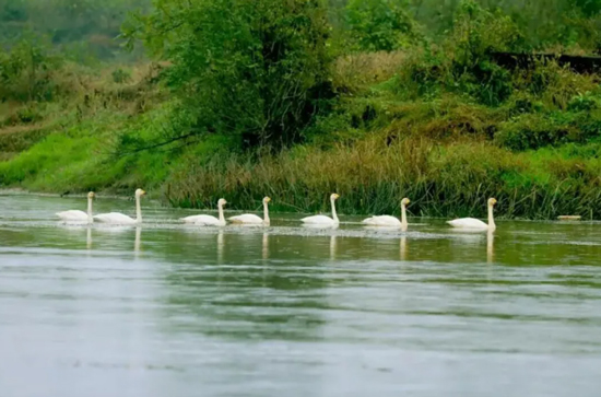▲临澧县道水河国家重要湿地内小天鹅队列