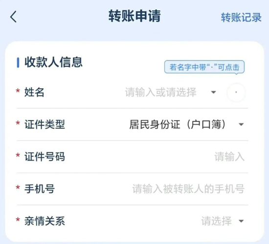 点击医保钱包转账申请,填写被转账人基本信息,填写完成后点击提交,等待返回信息。