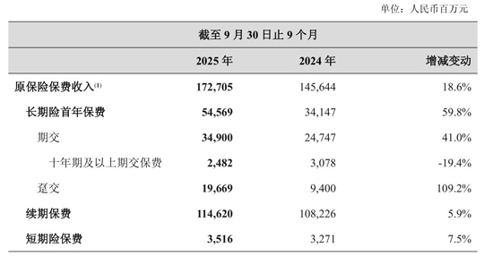 在负债端,保险业务同样展现出稳健增长与结构优化的双重特质。2025年前三季度,新华保险实现原保险保费收入1727.05亿元,同比增长18.6%。