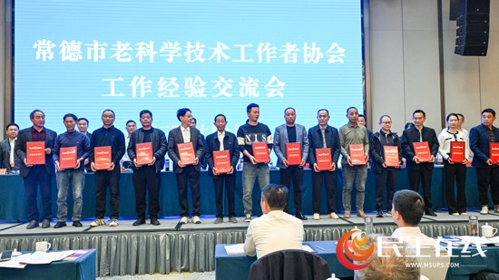 常德市老科协常务副会长张运华宣读《关于学习贯彻落实市委书记罗毅君对老科协工作作出重要批示的通知》和《关于表彰常德市老科协会员创新创业标兵的决定》,并为14名“创新创业标兵”授牌,标兵代表王业春上台发言。