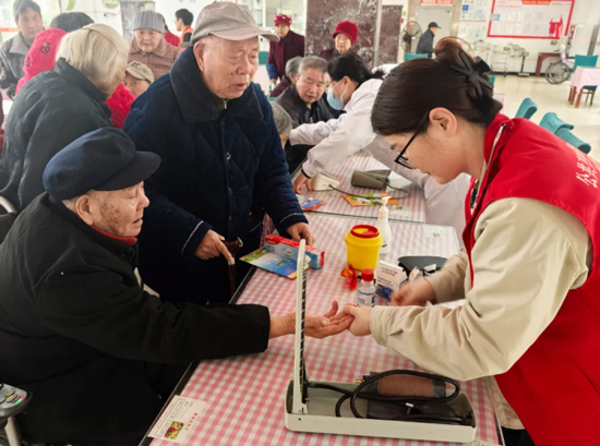 活动现场,来自民建卫生支部的专家、医生为养老院老人进行健康知识讲座,普及健康知识,免费测血压、血糖,提供内科问诊、慢性病健康咨询,并为老人们发放生活用品。