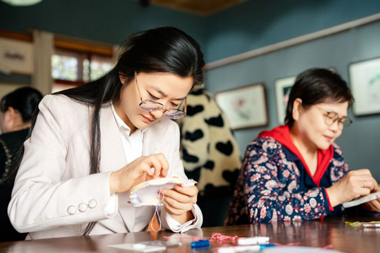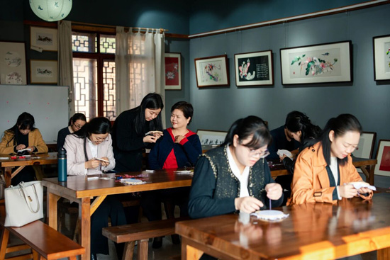 活动中,大家在郑家驿镇齐绘绣庄传承基地,一同体验了手工刺绣,在刺锈传承人的帮助下,每个人成功地锈出了自己满意的刺锈作品,更深入地了解了传统工艺,感受了桃源刺绣的非遗魅力。随后,大家又参观学习了齐绘绣庄在乡村振兴方面的“文化赋能、产业融合”等经验与做法。